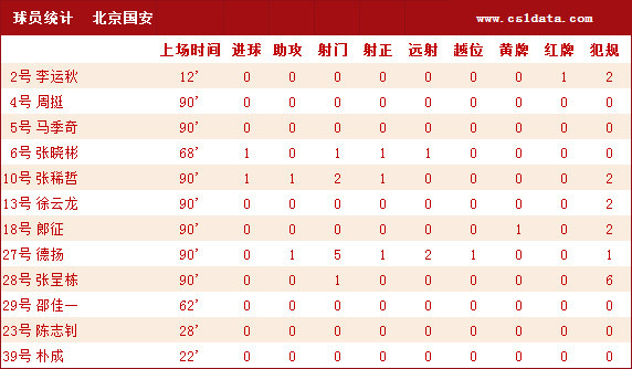 北京国安:赛季前被扣除5分,开局6轮仅取得1胜2平3负的战绩,创下队史最差开局纪录-41。直到上一轮客场0比0战平浙江队,才将积分清零,目前排名联赛倒数第4位-12。客场作战本就不占优势,加之球队状态迟迟未见起色,此役国安的压力远超对手。